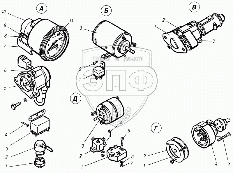 Каталог запасных частей к технике: Камский автозавод 4310. Электрооборудование
