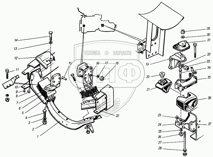 Каталог запасных частей к технике: Камский автозавод 4310. Подвеска силового агрегата