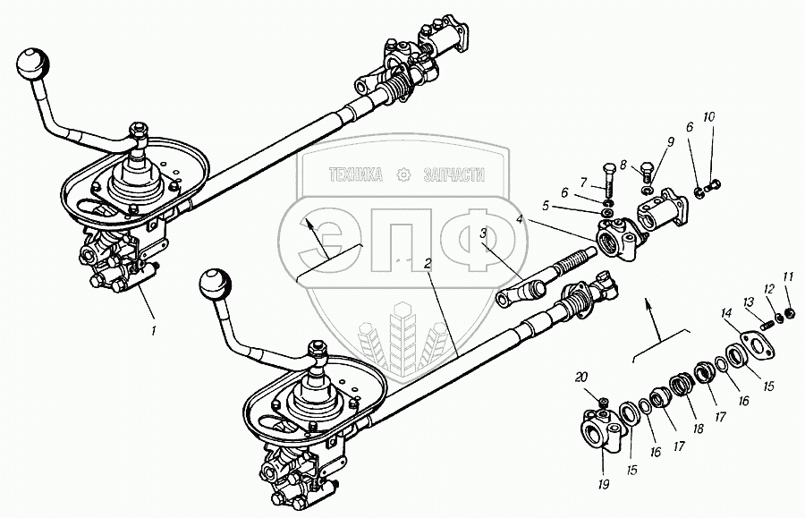 Каталог запасных частей к технике: Камский автозавод 4310. Привод управления механизмом переключения передач