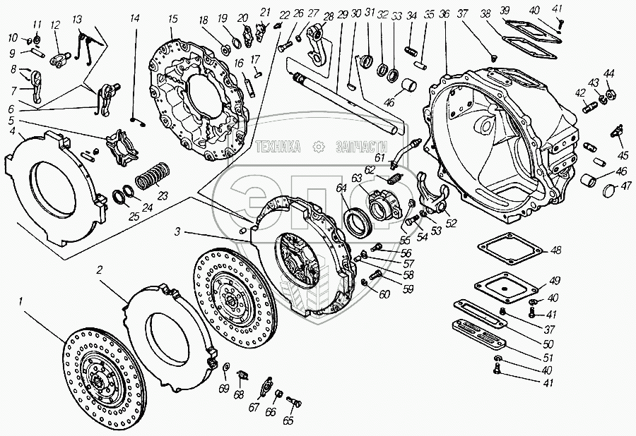 Каталог запасных частей к технике: Камский автозавод 4310. Сцепление