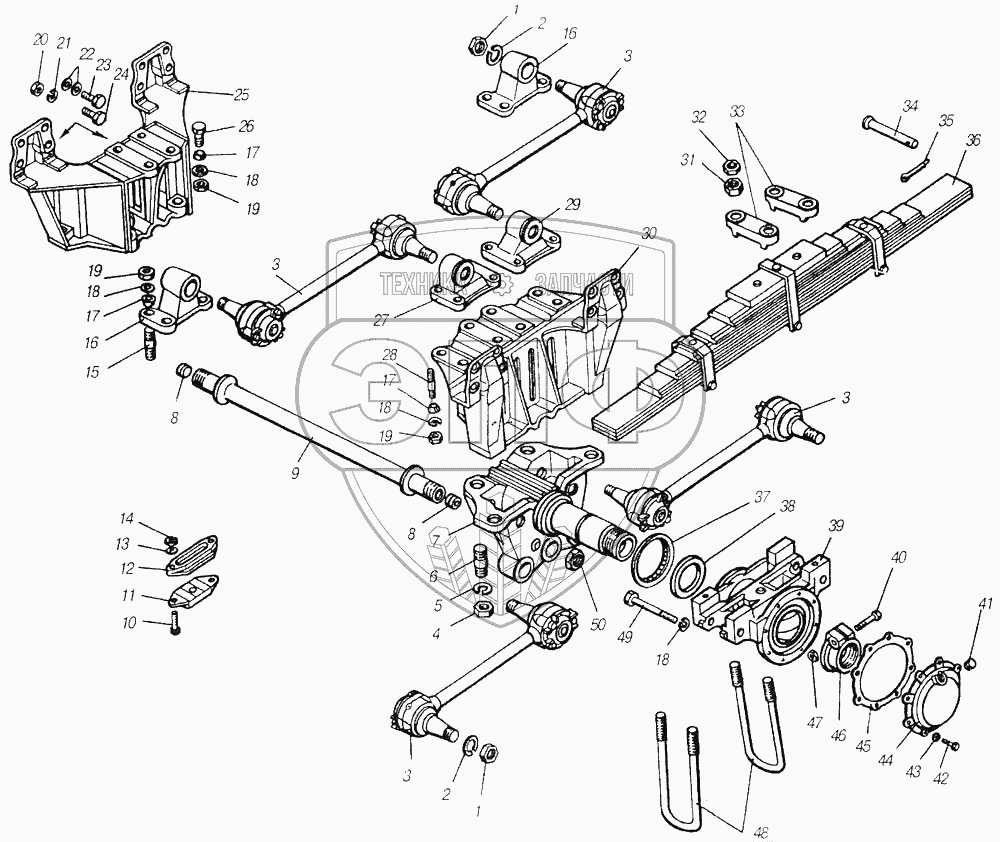 Каталог запасных частей к технике: Камский автозавод 4310. Установка задней подвески