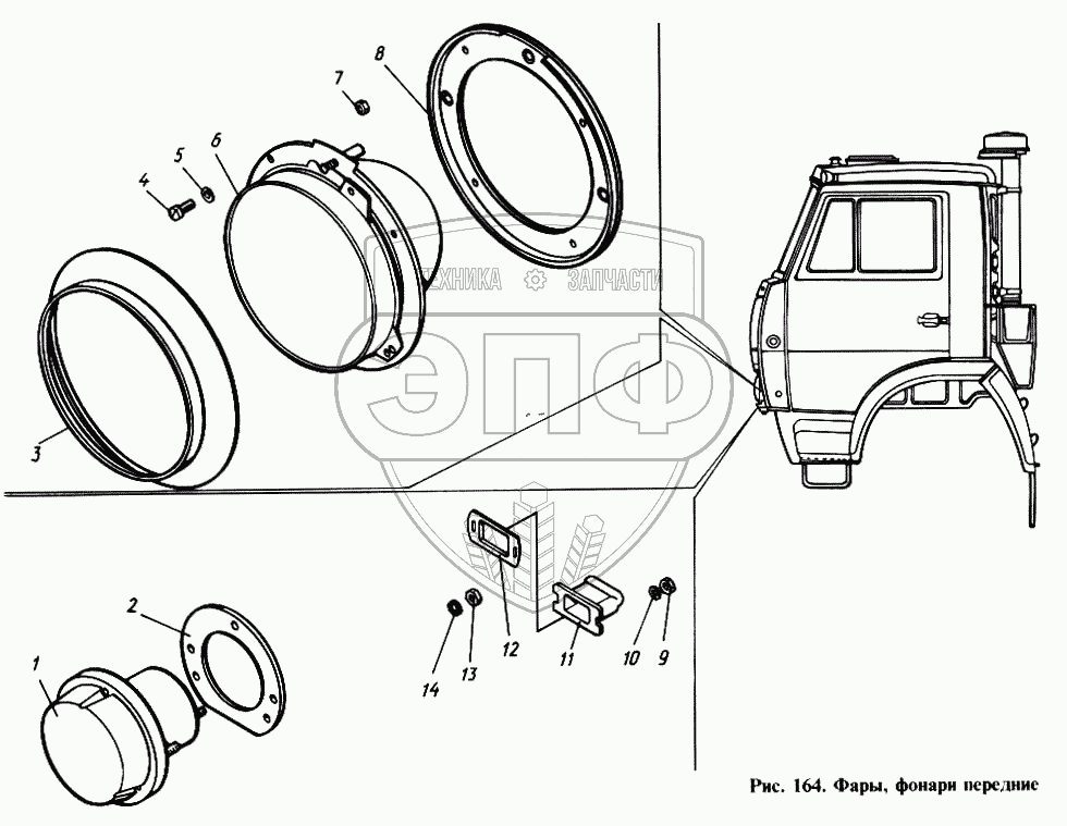 Каталог запасных частей к технике: Камский автозавод 4310. Фары, фонари передние