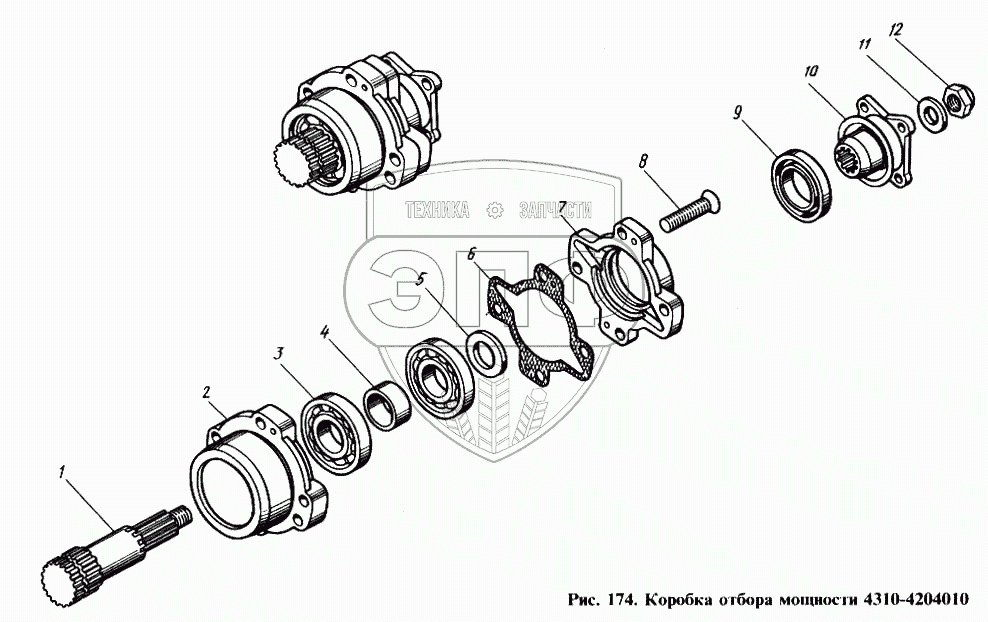 Каталог запасных частей к технике: Камский автозавод 4310. Коробка отбора мощности
