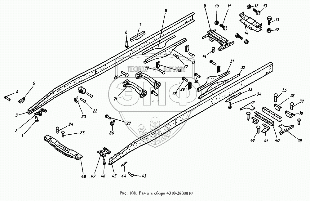 Каталог запасных частей к технике: Камский автозавод 4310. Рама в сборе