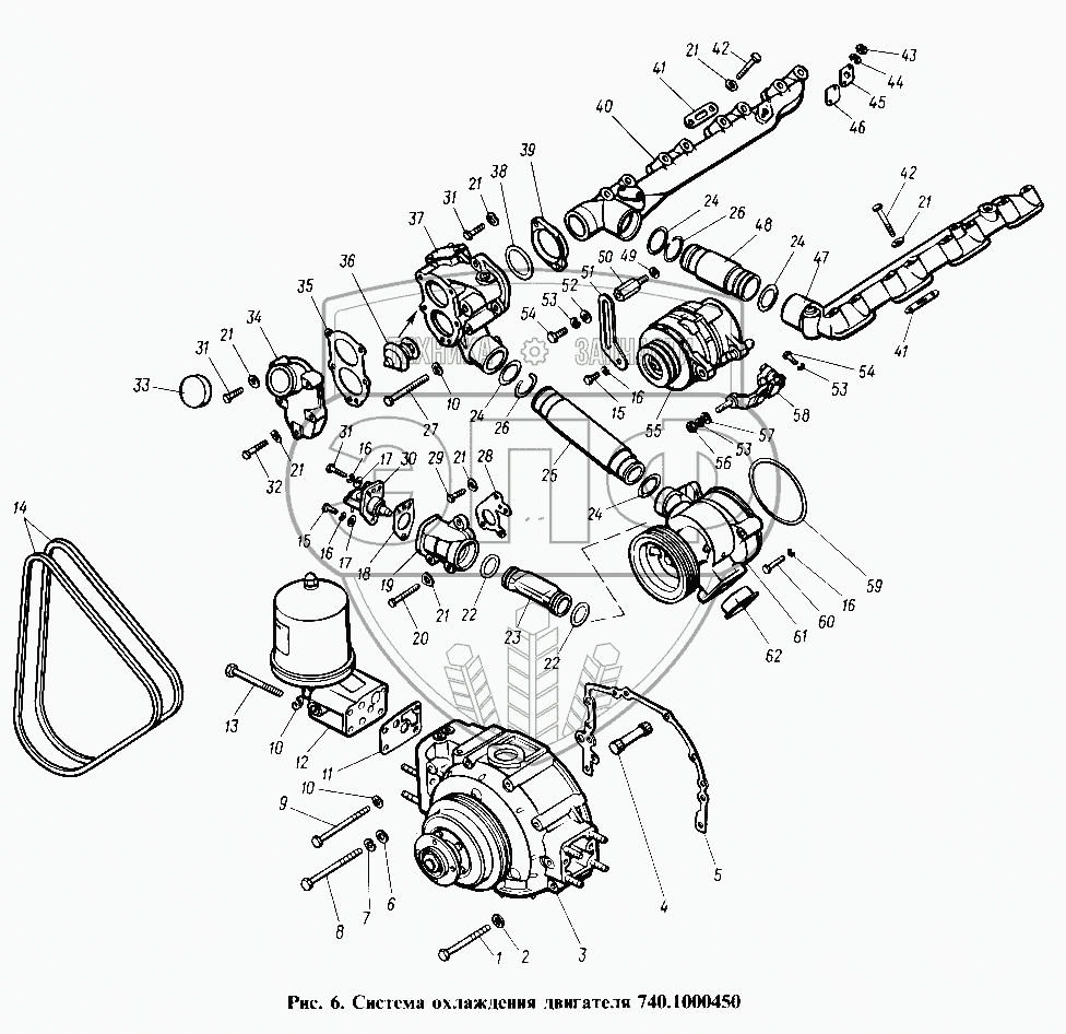 Каталог запасных частей к технике: Камский автозавод 4310. Система охлаждения двигателя
