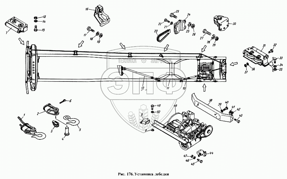 Каталог запасных частей к технике: Камский автозавод 4310. Установка лебедки