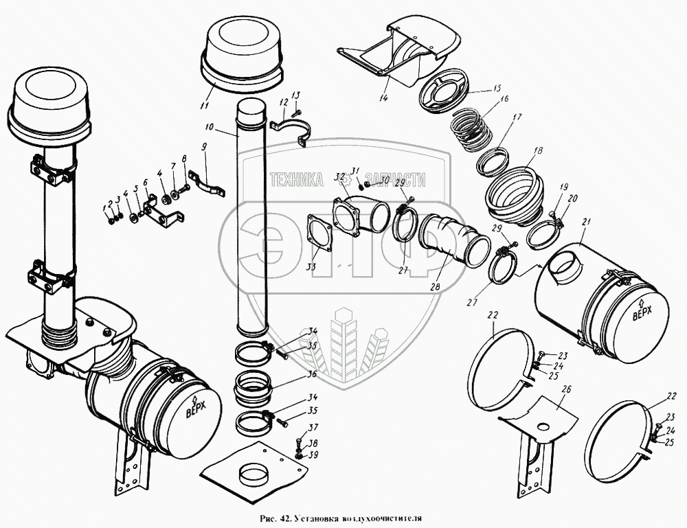 Каталог запасных частей к технике: Камский автозавод 4310. Установка воздухоочистителя