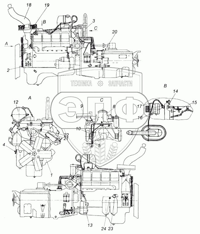 Каталог запасных частей к технике: Камский автозавод 43114. Агрегат силовой КАМАЗ-7403.10