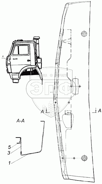 Каталог запасных частей к технике: Камский автозавод 43114. Панель передка боковая съемная левая