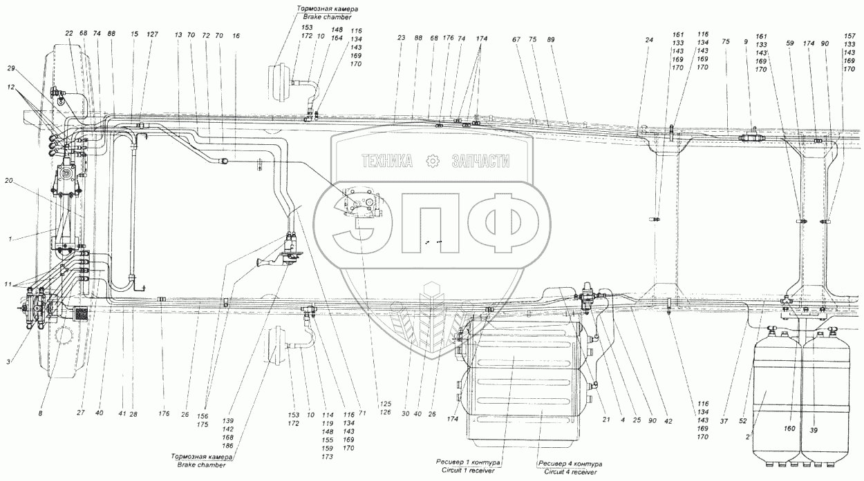Каталог запасных частей к технике: Камский автозавод 43114. Установка пневмотормозов