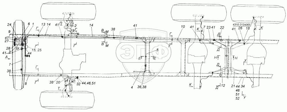 Каталог запасных частей к технике: Камский автозавод 43114. Установка системы накачки шин
