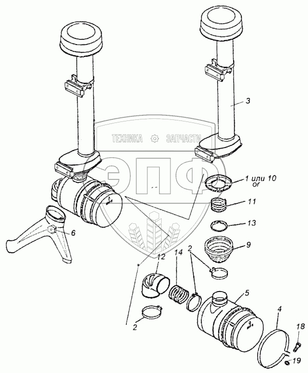 Каталог запасных частей к технике: Камский автозавод 43114. Установка воздушного фильтра