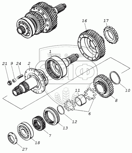 | 11 | 4310-1802448 | Кольцо распорное роликовых подшипников шестерни высшей передачи | Нет на складе | |