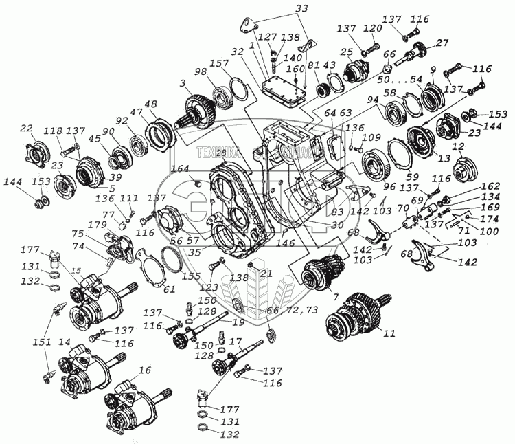 Каталог запасных частей к технике: Камский автозавод 43118. Коробка раздаточная