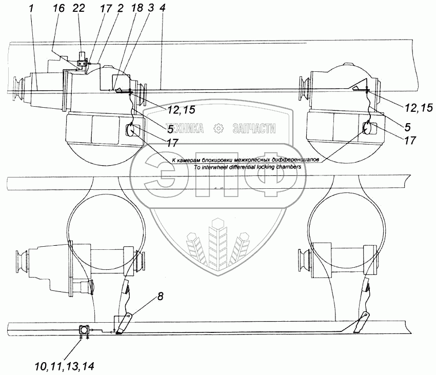 Каталог запасных частей к технике: Камский автозавод 43118. Привод блокировки межколесных дифференциалов