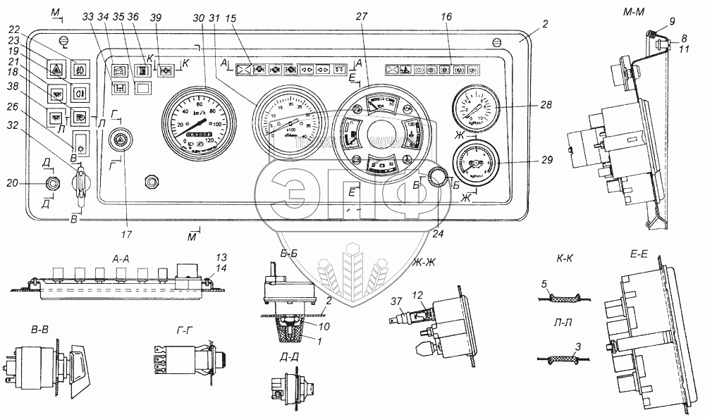 Каталог запасных частей к технике: Камский автозавод 43118. Щиток приборов