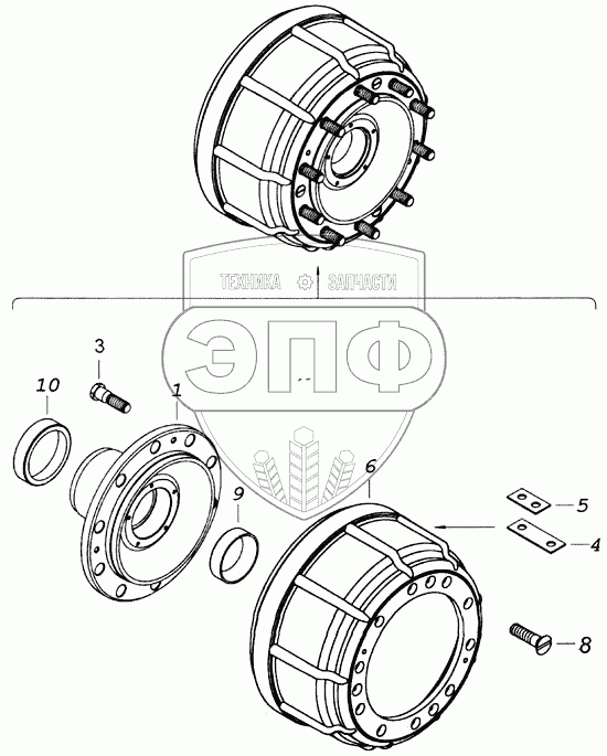 Каталог запасных частей к технике: Камский автозавод 43118. Ступица с барабаном тормоза