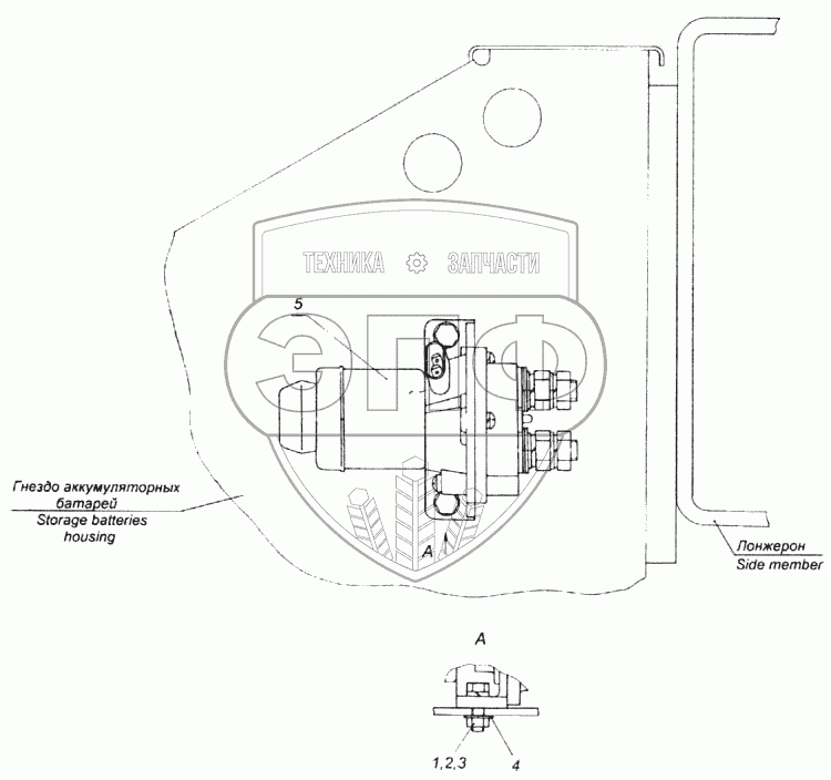Каталог запасных частей к технике: Камский автозавод 43118. Установка малогабаритного выключателя массы