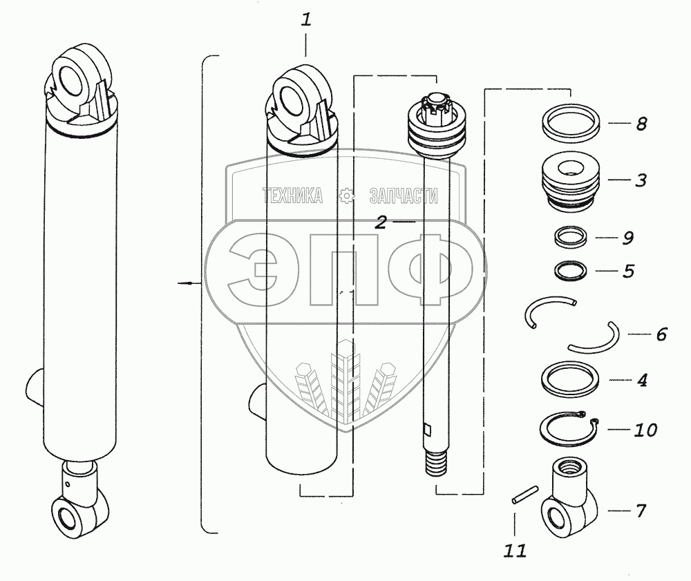Каталог запасных частей к технике: Камский автозавод 43255 (Евро-2). 4310-5003010 Гидроцилиндр