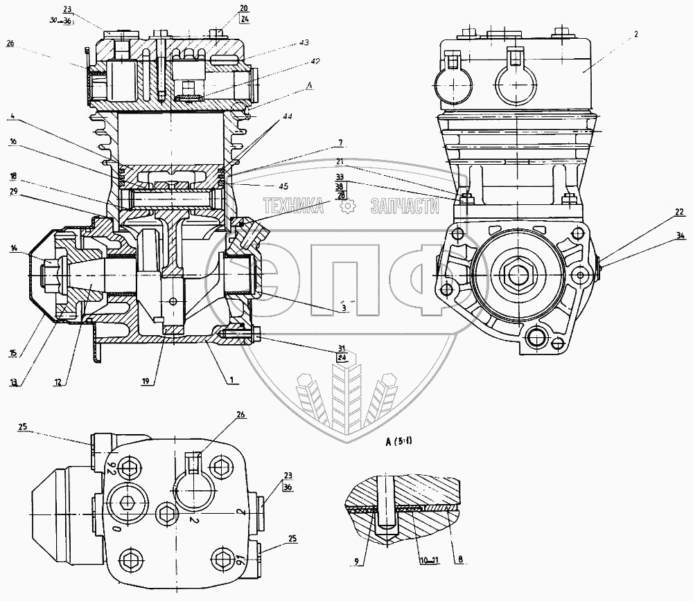 Каталог запасных частей к технике: Камский автозавод 4326. Компрессор пневмотормозов