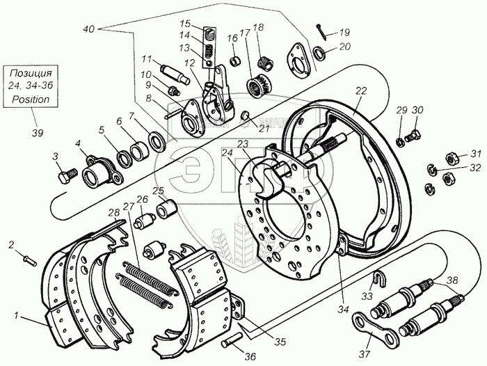 Каталог запасных частей к технике: Камский автозавод 4326. Тормоза рабочие передние