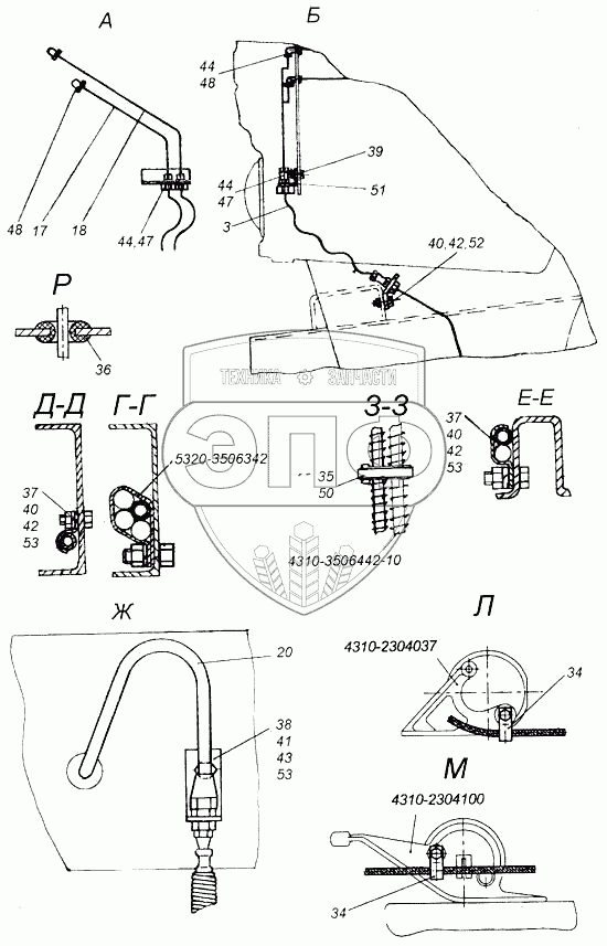| 8 | 4310-3125074 | Трубка от крана управления к шинам колес первая в сборе | Нет на складе | |