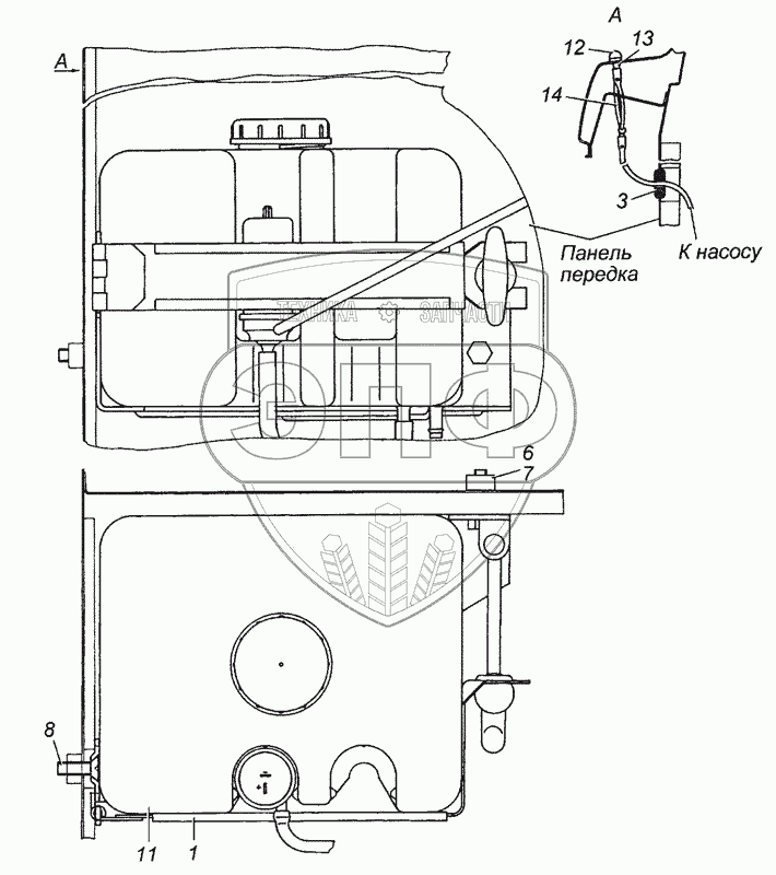 Каталог запасных частей к технике: Камский автозавод 43501 (4х4). 53205-5208004 Установка омывателя