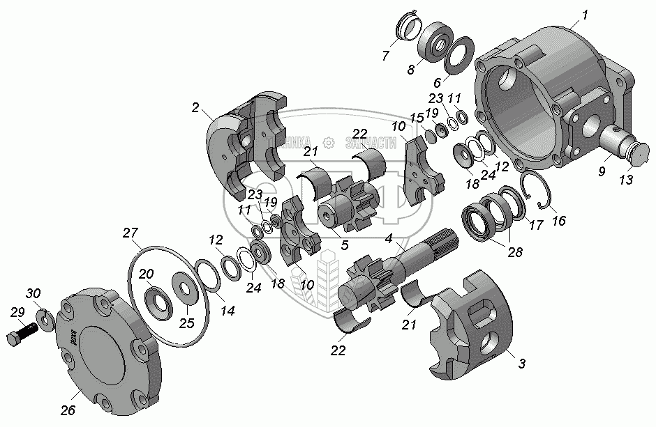 Каталог запасных частей к технике: Камский автозавод 45141. Насос шестеренный НШ32А-3-Л
