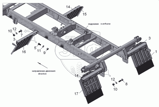 Каталог запасных частей к технике: Камский автозавод 45142. 45142-8400004 Установка брызговиков