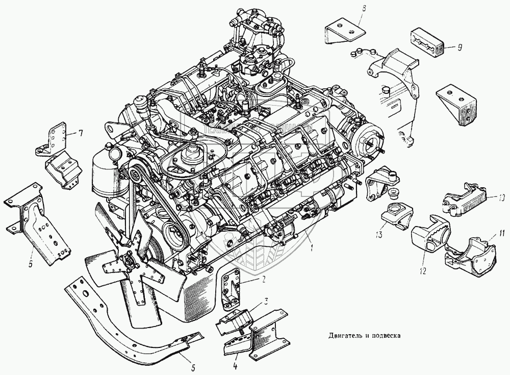 Каталог запасных частей к технике: Камский автозавод 5315. Двигатель и подвеска