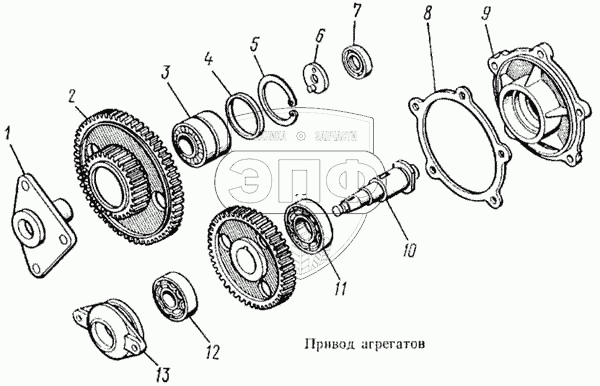 Каталог запасных частей к технике: Камский автозавод 5315. Привод агрегатов