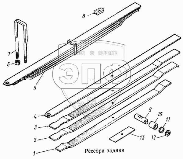 Каталог запасных частей к технике: Камский автозавод 5315. Рессора задняя
