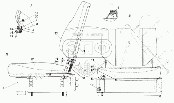 Каталог запасных частей к технике: Камский автозавод 53228, 65111. Сиденье пассажирское с ящиком