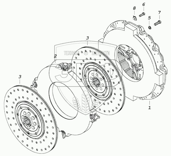 Каталог запасных частей к технике: Камский автозавод 53228, 65111. Сцепление