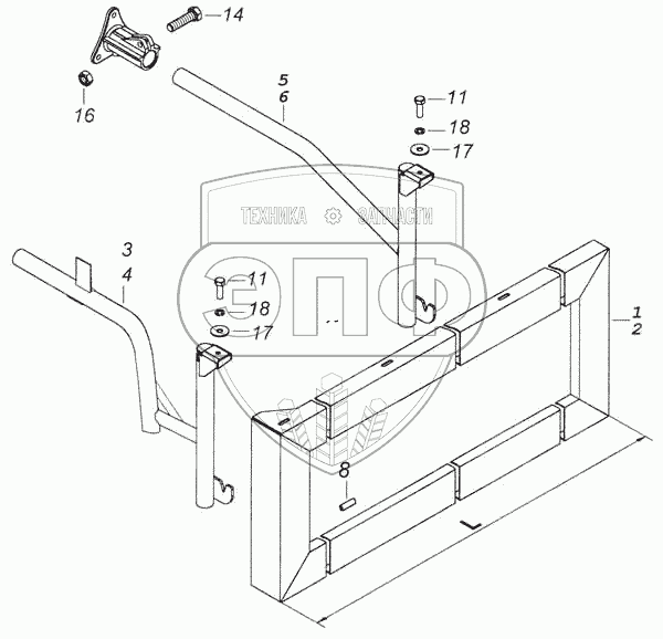 Каталог запасных частей к технике: Камский автозавод 53228, 65111. Установка боковой защиты