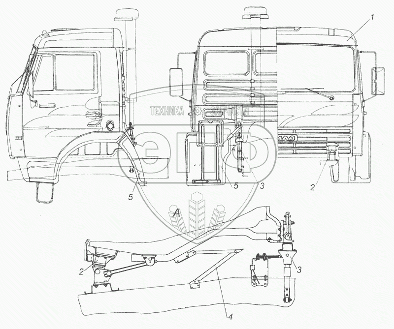 | 2 | 5320-5000003 | Переднее крепление и механизм уравновешивания кабины | Нет на складе | |