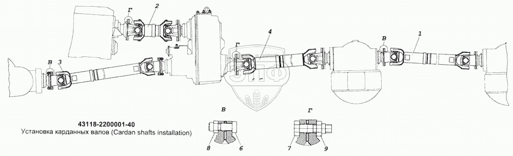 Каталог запасных частей к технике: Камский автозавод 53228, 65111. Установка карданных валов