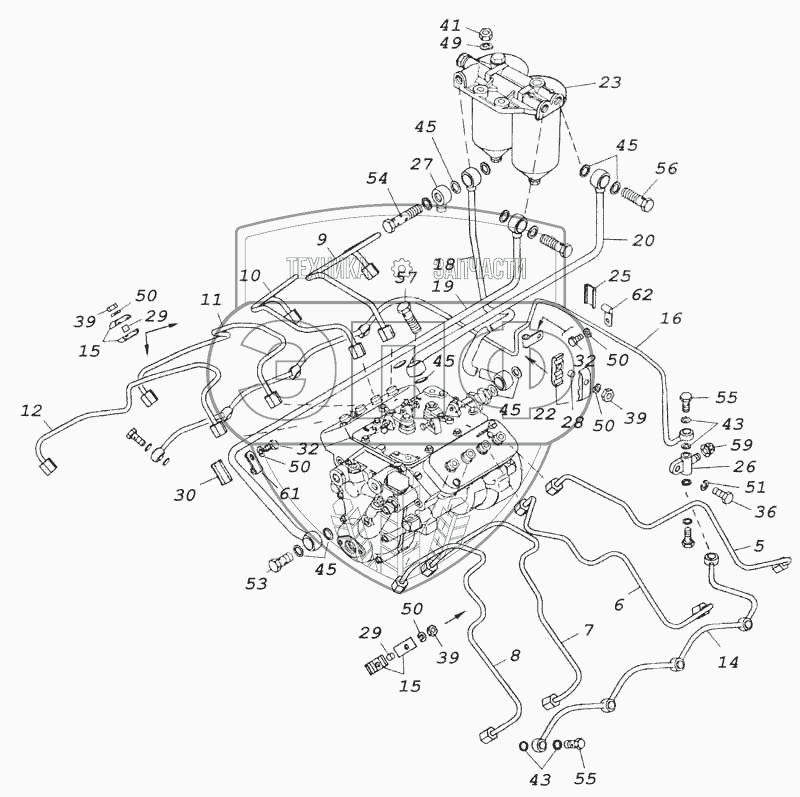 | 6 | 740.11-1104312 | Трубка топливная второй секции насоса высокого давления | Нет на складе | |