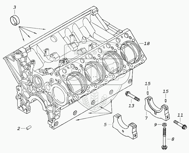 Каталог запасных частей к технике: Камский автозавод 5360. Блок цилиндров в сборе