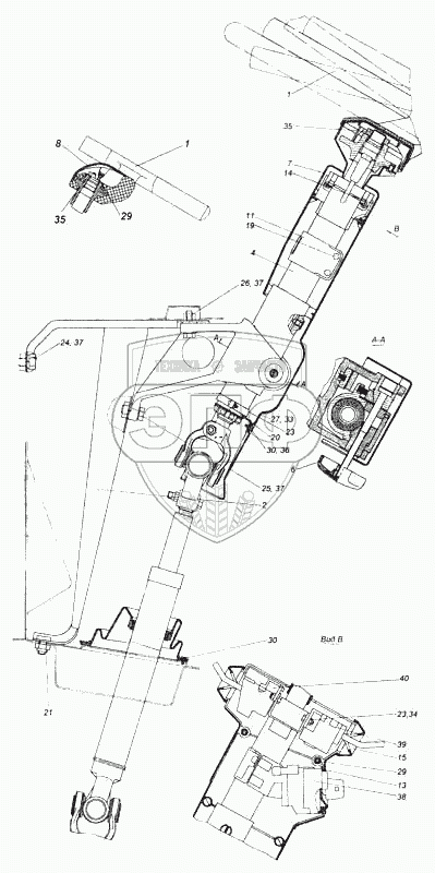 Каталог запасных частей к технике: Камский автозавод 5360. Установка колонки рулевого управления