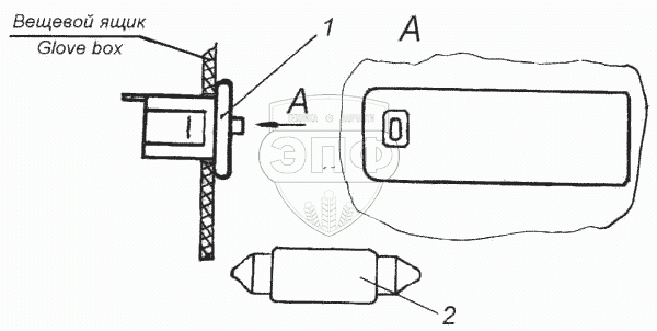 Каталог запасных частей к технике: Камский автозавод 5360. Установка плафона освещения вещевого ящика