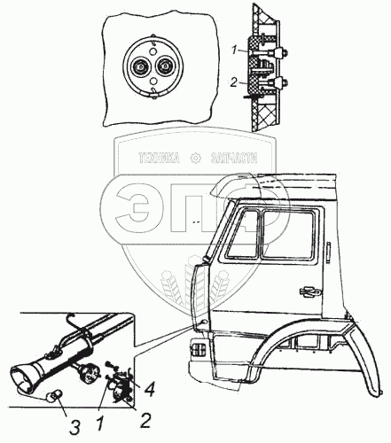 Каталог запасных частей к технике: Камский автозавод 5360. Установка розетки переносной лампы