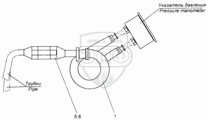 Каталог запасных частей к технике: Камский автозавод 5360. Установка трубопроводов к манометру