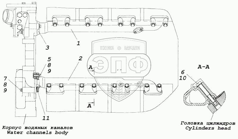 Каталог запасных частей к технике: Камский автозавод 5360. Установка водяных труб