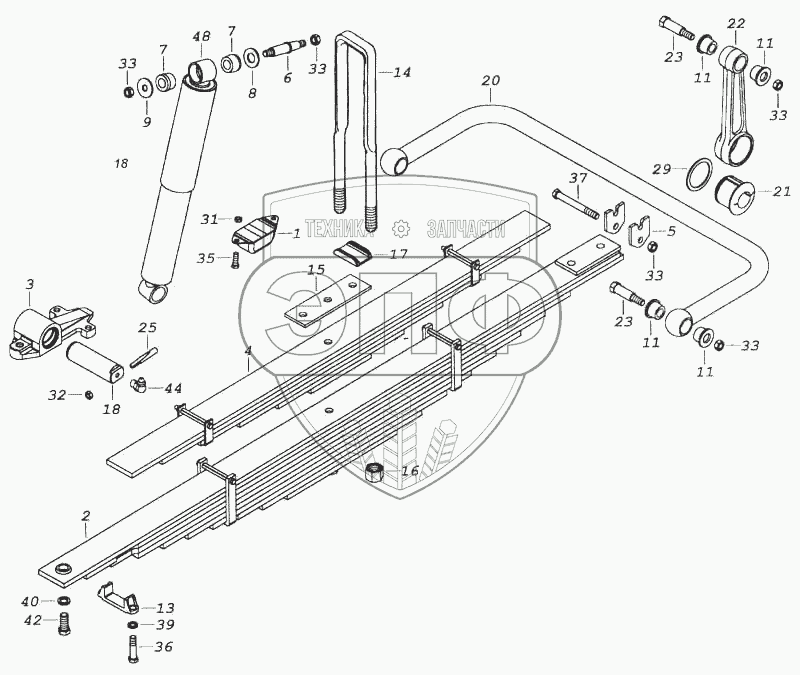 Каталог запасных частей к технике: Камский автозавод 5360. Установка задней подвески