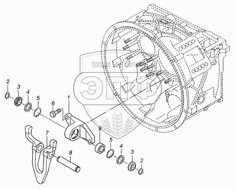 Каталог запасных частей к технике: Камский автозавод 5360. Вилка выключения сцепления