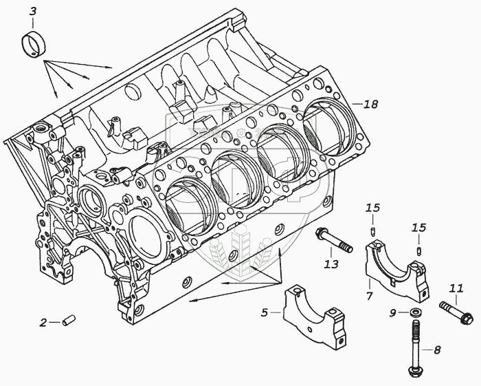 Каталог запасных частей к технике: Камский автозавод 5460. Блок цилиндров в сборе