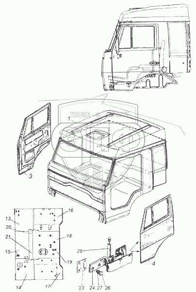 Каталог запасных частей к технике: Камский автозавод 5460. Кабина с дверями окрашенная