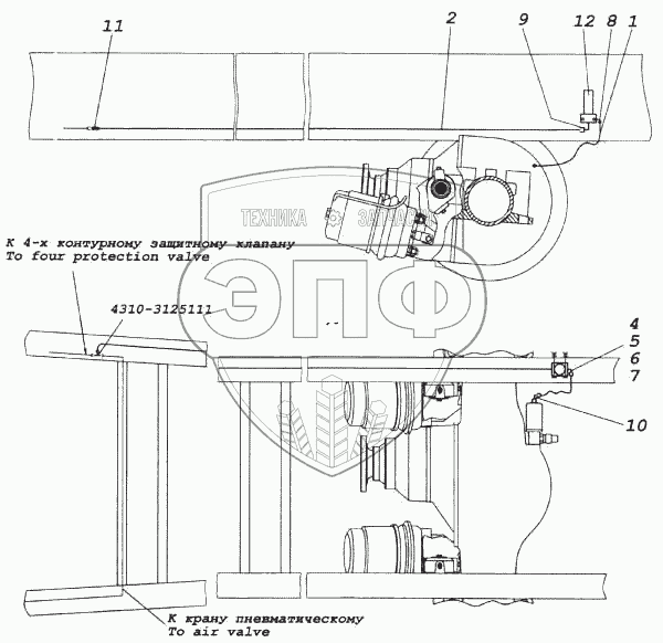 Каталог запасных частей к технике: Камский автозавод 5460. Привод блокировки межколесного дифференциала
