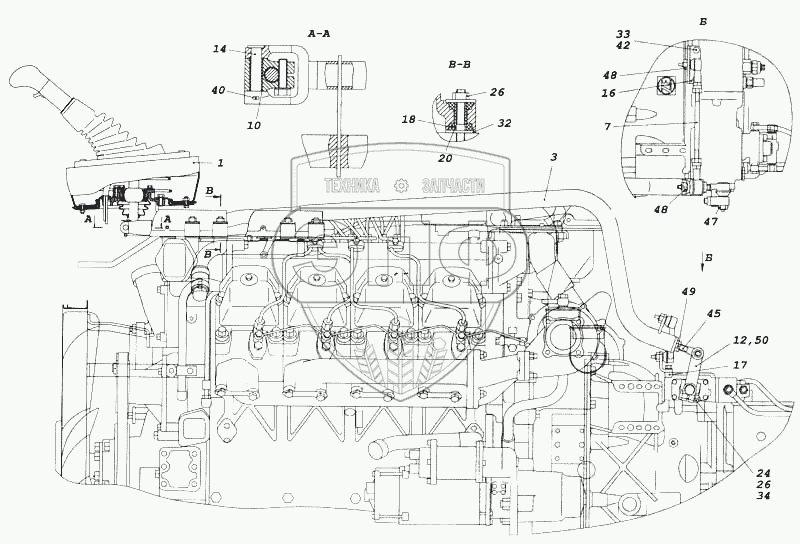 Каталог запасных частей к технике: Камский автозавод 5460. Привод управления механизмом переключения передач